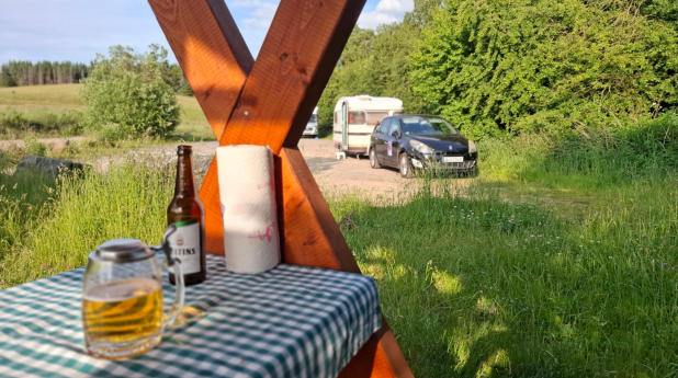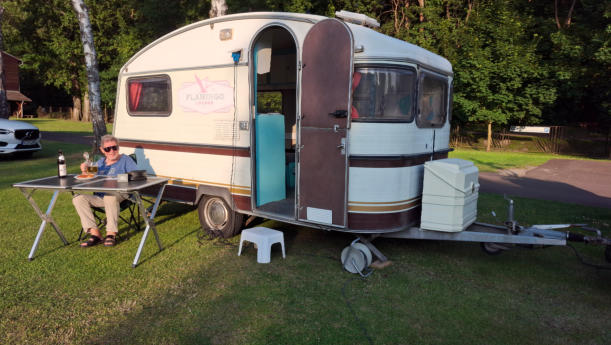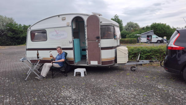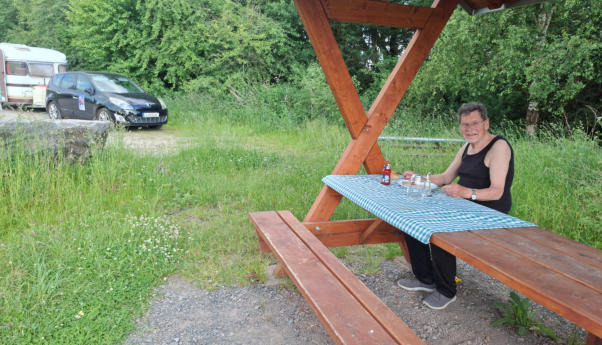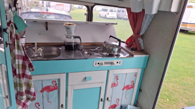 Campingplatz Bernburg (unten), im Wohnwagen (Kaffepause)