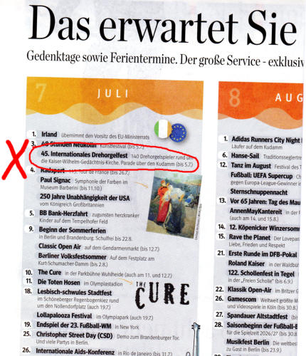 Auszug aus einem BerlinerVeranstaltunskalender für 2025